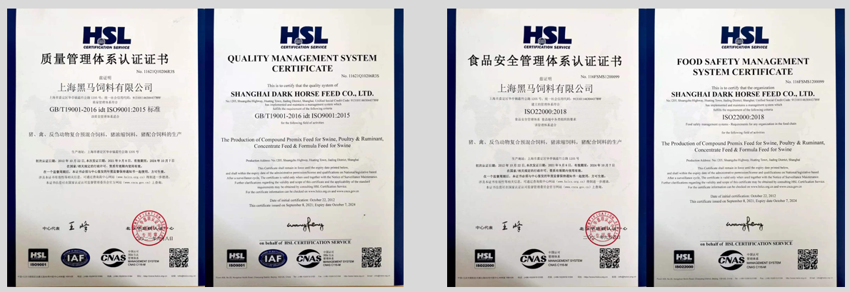 公司按照《飼料質量安全管理規范》要求,并結合自身的特點,建立質量管理體系及食品安全管理體系,對配方設計、原料采購、生產控制、品質監管及物流運輸等各個環節進行嚴格的管理。