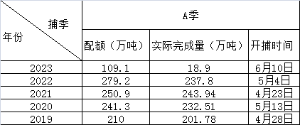 從上圖可以看出2023年A季秘魯能提供中國市場的魚粉量幾乎為零,2023年B季魚粉開捕處于歷史最早月份。